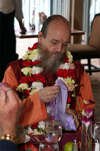 Bodhinatha receives a gift from devotees in San Diego... We have a short report from his day, prior to the evening reception...