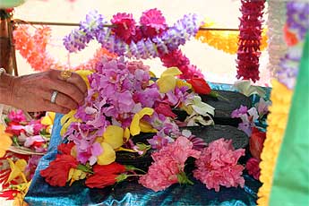 The sandals are taken out of the palanquin and placed once again on Gurude