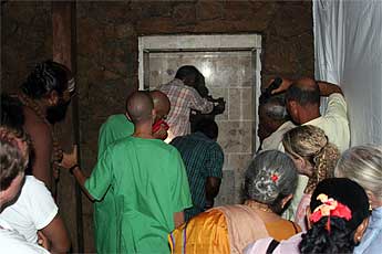 As it turned out, we needed to bring in jack-hammer for the final moment to free the old murthi from its place.
