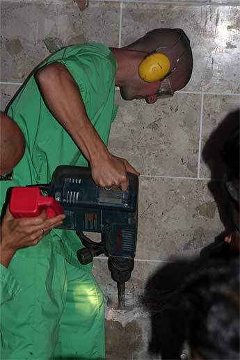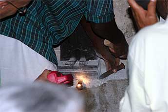 The previous installation was well done, and it takes more than a few blows to free the old murthi.