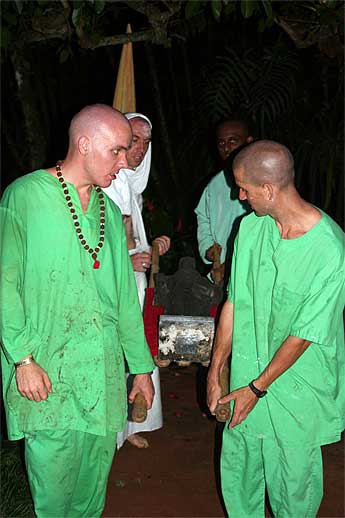 Here we are, on the banks of the Wailua River where the forces of the old murthi will be adjusting a few days and then finally he will be immersed in the river...