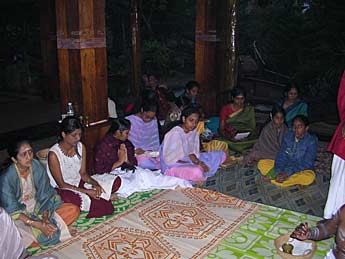 A humble group of sishyas attended the evening ceremony. Despite a cold sea breeze blowing outside the Mandapam, everyone could feel the spiritual warmth inside...