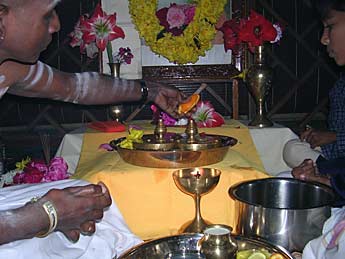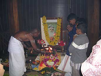 A small peedam was set up inside the Ganesha Mandapam, where were placed a large photo of Gurudeva and the Tiruvadi.