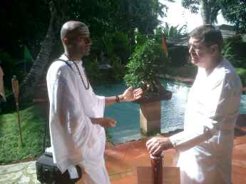 Sadhaka Dandapani chats up long time devotee Kulapati Deva Katir