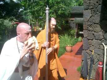 Bodhinatha was impressed by how hi-tech the place was also. They have an actual robot in the form of one of the gurus of their lineage, he gestures as he talks to you and then gets up and goes for a walk around the room!
