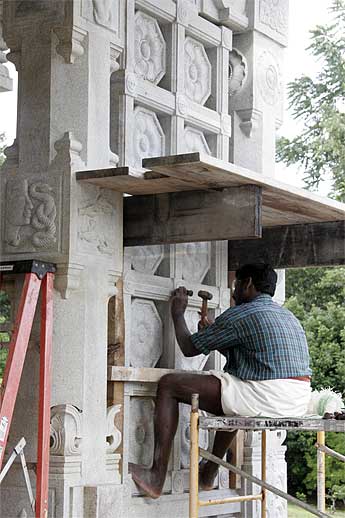 Kumara Veylan, originally from Malaysia, now living in New York, visited yesterday and was most impressed so he returned today to attend the 9am Siva puja. He enjoyed the tour of the grounds and of Iraivan. Happy to see Hinduism flourishing in the US.