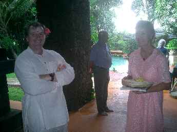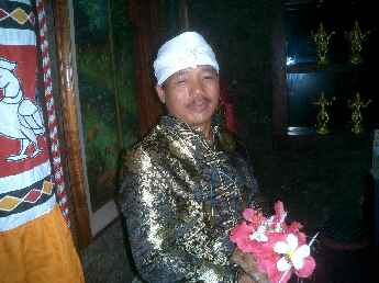 His outfit was "stunning" from a men's fashion point of view. Gurudeva would have loved it! It is traditional Balinese jacket and sarong, the headband is called an udang.