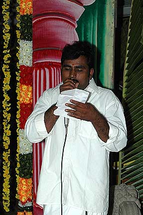 This is PR Supramani again. He is a highly intelligent person often participating in dramas etc and he is presenting a poem on Iraivan in Tamil. We had Madam Sheela Venkatakrishnan, who looks from behind to translate the poem into English.