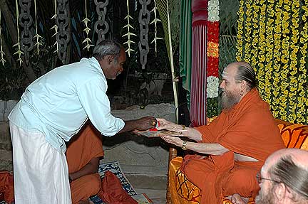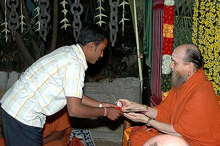 Bodhinatha on stage at the celebration to honor the silpis in Bangalore....Today we bring your more photos from the India mission, from our Bangalore worksite.