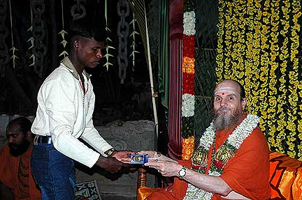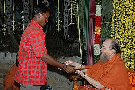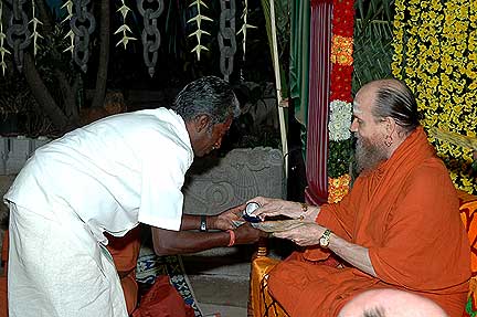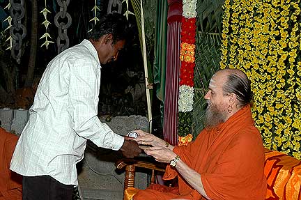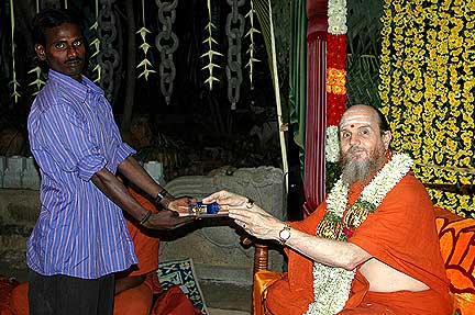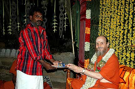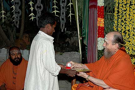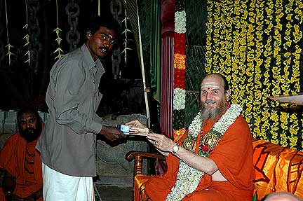 Receiving first in the list is Silpi Sundarama Achari who served Iraivan since 1991. He is also one of the carvers who had gone to Kauai in the first batch of jointing work.