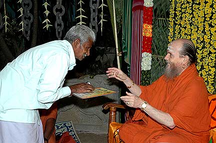 This is Naina Mohamad fondly called as Muthu in our worksite, a Muslim. He is a sincere worker and he is the chief behind all of our shed construction ....an expert in coconut leaf sheds. Prior to coming to our worksite, he has served as a joining silpi in Sri Trichi Swamis Raja Rajeshwari Temple of Sri Kailasa Ashrama.