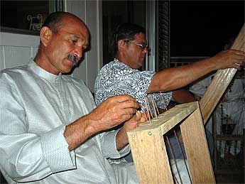 Brahmachari Rajadeva works for hours to get us ready for Iraivan family home evening.