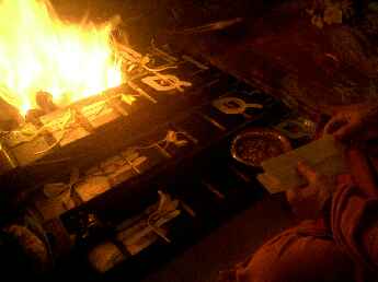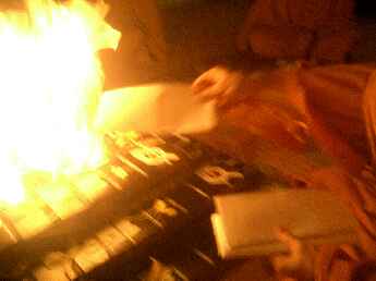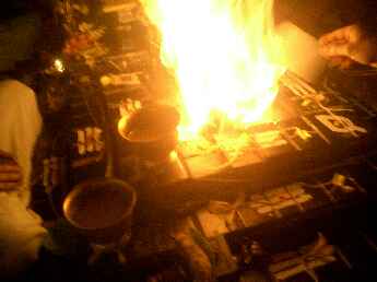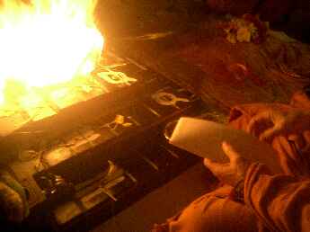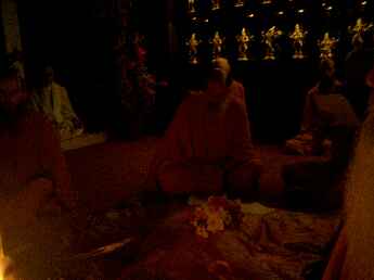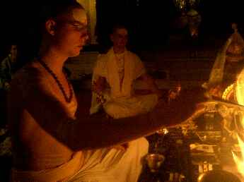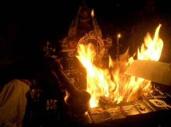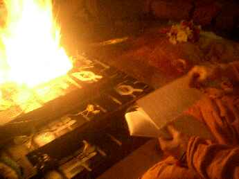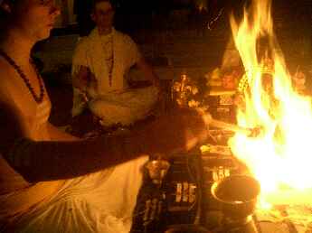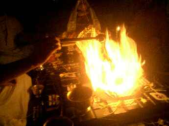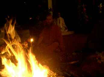 Sadhaka Jivanandanatha performs the homa, Sadhaka Nilikantha in the background.