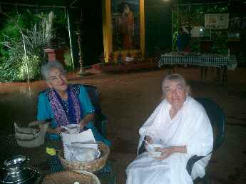 Leonora and Shama enjoying some breakfast. Leonora is an artist.