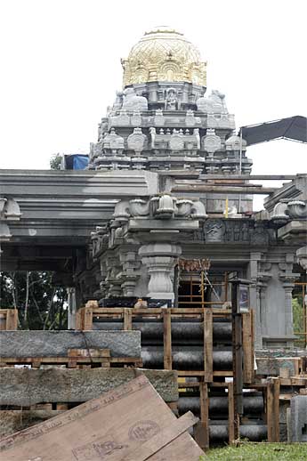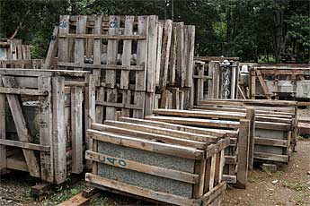 The news from Iraivan is the delivery of four containers of stones. These arrived from Bangalore this week, and the teams here have been several days unloading them.