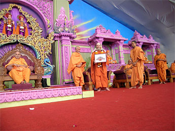 Bodhinatha is presented a commemoration of the event.