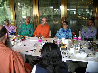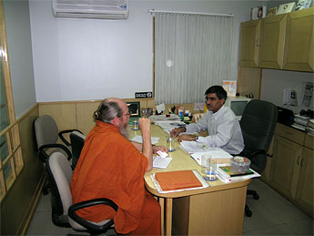 Part of the trip was "business," and here Shanmuganathaswami talking with Sanjay of CNA distributors in Delhi, who handle our India subscriptions.