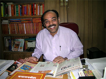 RP Jain of Motilal Bannarsidas, the foremost publisher of reigious books in India. Aside from an absolutely delicious lunch at his joint family's home, we discussed several publication issues. They had just printed the Ajita Agama, which is the only Saiva Agama in print. As well, they said they could find the large bound edition of all four Vedas published some years ago in Delhi. This is only in Sanskrit, but is a fine book.