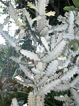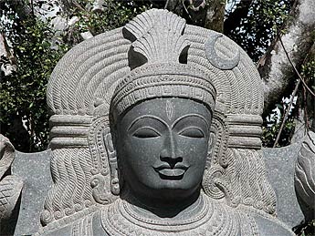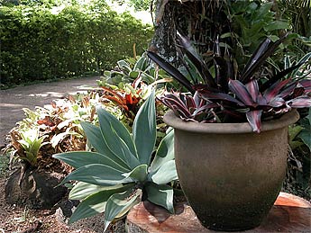 Bromeliads in a pot decorate the path the Iraivan Temple.