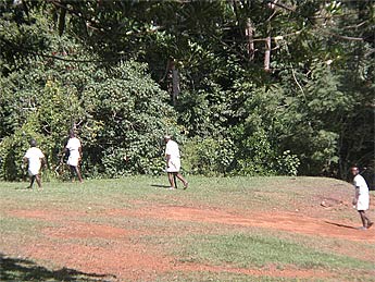 Here is Shanmugam Sthapati and three of the carvers walking back to their quarters for lunch.