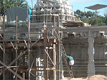 This is the "timelapse" angle. Whenever any new change happens, the monks take a photo from exactly this spot (there is a permanent shelf attached to a Rudraksha tree trunk to assure consistency. When the temple is complete, this series of hundreds of photos will provide a timelapse movie of the work. Seven years of progress will be seen in just a couple of minutes!