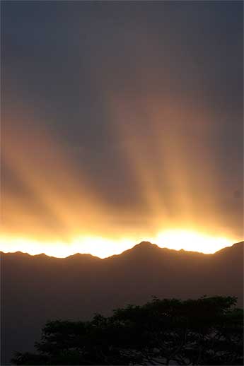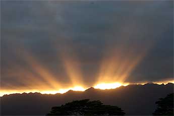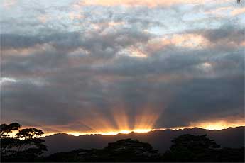 We continue with our quiet retreat. We bring you some photos from our retreat day and last night's sunset over Mt. Waialeale, the extinct volcano just a few miles from the monastery.