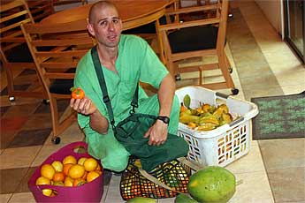 Sadhaka Tejadevanatha with the Sun Two fruit harvest. Our trees are "dripping" with tons of oranges, grapefruits, tangerines, papayas, star fruit...