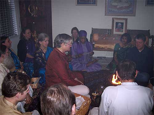 Ruth Ann Delph takes the Sakahara Vrata at the homa of the Golden Gate Mission.