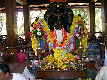 This is our last Ganesha Homa for year 2005 at the Spiritual Park. Lord Pancha Ganapati is becoming more and more popular at the Park and thousands of devotees from all over Mauritius make it a must to pilgrimage to this sacred place at least once a year. This month hundreds of devotees were there to attend the morning Sunday Homa.