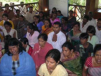 While the sacred mantra is being chanted by everyone present, there is a high spiritual vibration in the air...Each one is uplifted in the group.