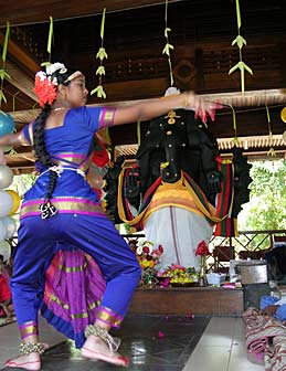 After a short arati by Kavinian, the first item is presented a Bharat Natyam dance by Padmashiri Ramsamy.