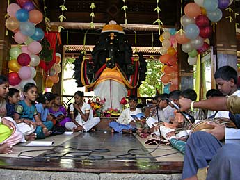 After all five Ganeshas have been found, everyone returned to the Ganesha Mandapam for a final arati and very short meditation on Lord Ganapati.