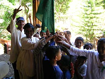 Once all gifts distributed to some hundred youth participants of the Treasure Hunt, a meal is served to all sponsored by the Chenganna family from Piton.