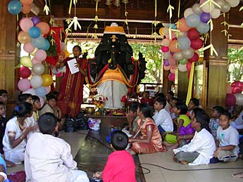 Enrolled MC student Ananda Mootoocupen was the Master of ceremonies. He explained in creole, Gurudeva's teachings on the Pancha Ganapati festival from Gurudeva's book Loving Ganesha.
