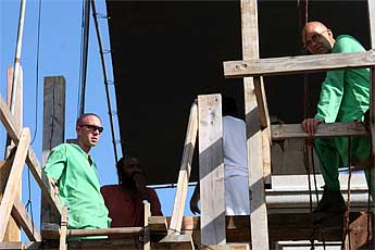 Meanwhile our Siddhidata Kulam team is working up on the temple scaffolding, making ready the next stone movements by the giant crane.