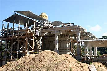 We are experiencing an unusually long series of clear dry days on Kauai island. Here is a view of the West Gopuram that is being worked on today by the Indian sculptors.