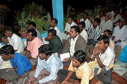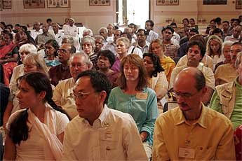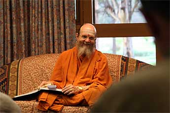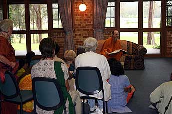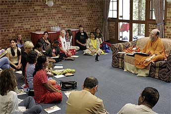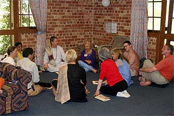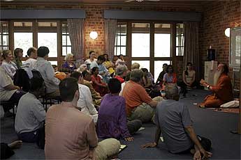 Group discussions are part of Bodhinatha's classes. Everyone is having such a good time that they want the classes to keep going.