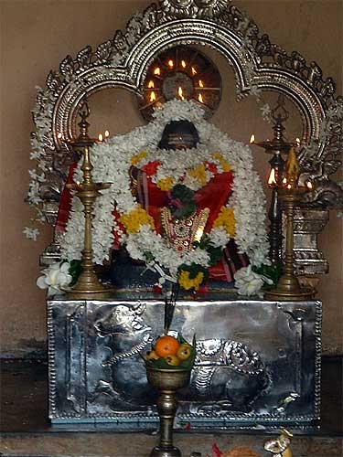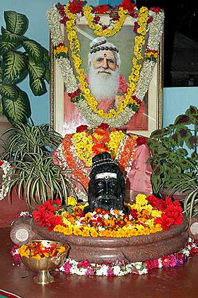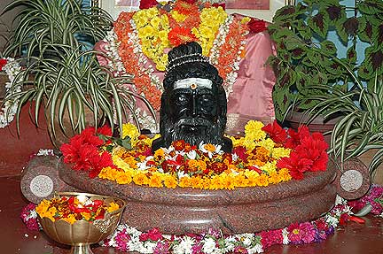 In Karnataka state it is not unusual to see Siva lingams with metal "kavacham" or coverings that are carved like the face of Lord Siva. Here we have Gurudeva's likeness in granite.