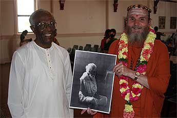 Mr. Pasupathy is the one who took this rare photograph of Satguru Yogaswami. He presents it to Bodhinatha. It is one of 5 photographs ever taken.