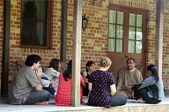 Some discussions take place outdoors in the fresh countryside air and sun.