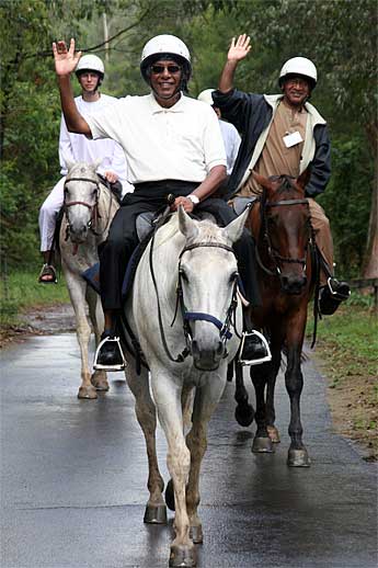 Jan 9th (Day 4): One of the most popular activities at the resort is horse riding. Arjunan Subramaniam from Malaysia (left) and Manon Mardeemootoo from Mauritius (right) loved the horse rides.