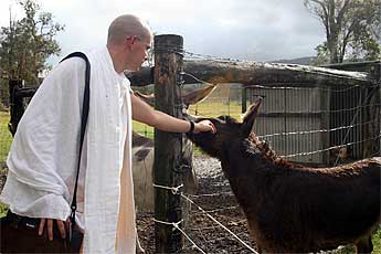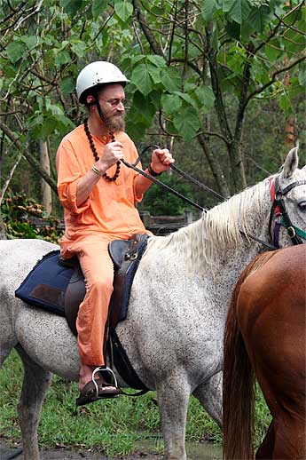 Sadhaka Jivanandanatha after a great horse ride through the bush. His horse Clarissa was very well behaved.