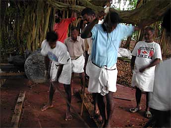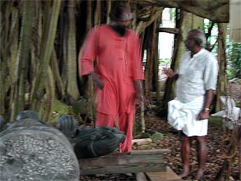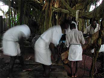 Our team of silpis at work under the banyan tree near Kadavul Temple, with the Six-Faced image of Lord Murugan....