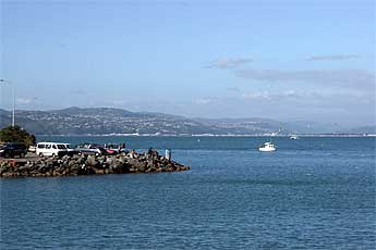 It is a beautiful day with warm weather. The bay is as blue as the sky.