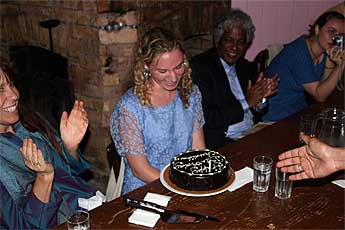 A surprise birthday cake for her. Everyone joined in and sang Happy Birthday.