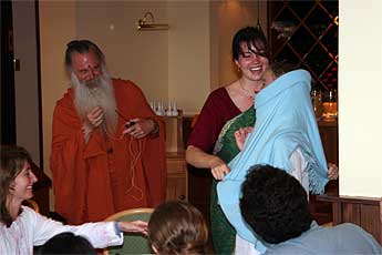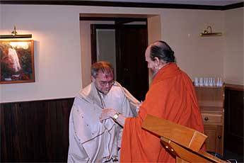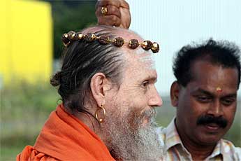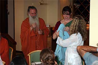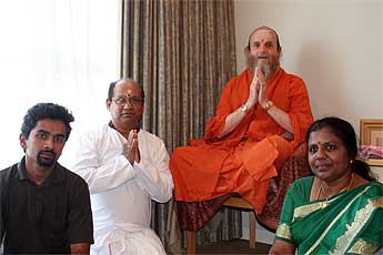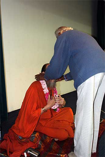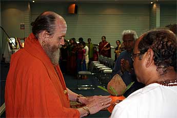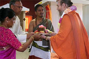 a traditional welcome for a visiting swami.