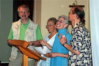 From left, Clive Roberts, Devi Tandavan, Lynda and Joel Knepp sing a song that Lynda composed.