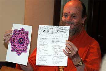 Hot news just arriving moments ago: "Bodhinatha had a nice TV interview last night in the hotel room with professional lighting, TV screen, etc. This morning the Sydney Morning Herald (largest newspaper in New South Wales state) interviewed him for about 90 minutes. Then at 3:15pm ABC National Radio is coming to interview him."