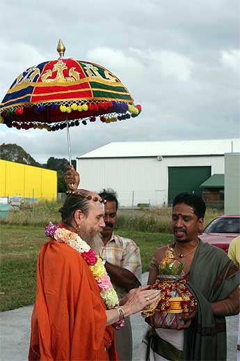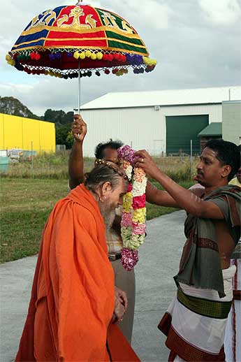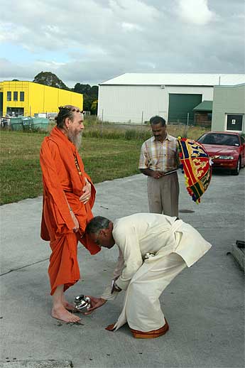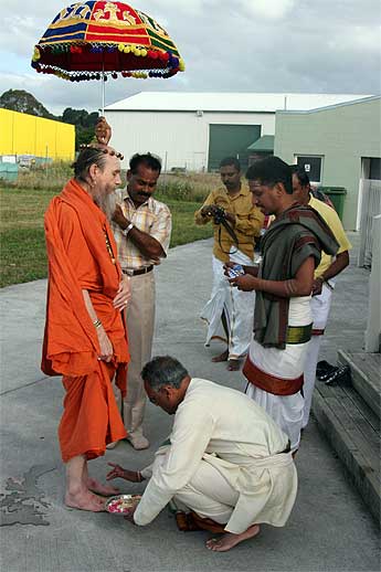 Here is Bodhinatha being greeted at the Ganesha temple in Auckland... more on the last days in New Zealand below.