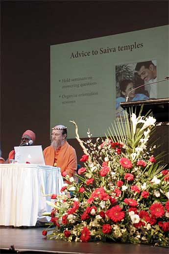 The talk focused on the challenges and opportunities of Saivism, the theme of the conference, and was well received by the crowd.